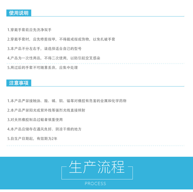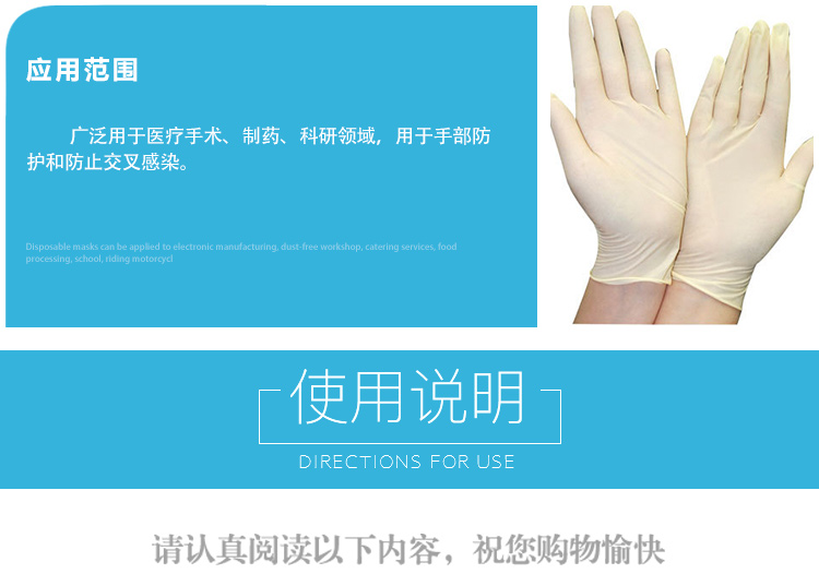 使用说明:1. 穿戴手套前应先洗净双手