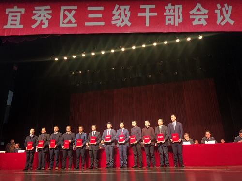 2月16日上午,宜秀区三级干部会议隆重召开。区委书记娄雪松出席会议并讲话,区长郑志主持会议,区委副书记张耿宣读表彰决定,区领导程贤华、汪龙生、昝建亮、李亚波、胡骏、林云飞、江学文、江存富、徐天然出席。大会对荣获2018年度全区先进集体和个人进行了颁奖,安庆市康明纳包装有限公司喜题创新创牌先进单位,董事长龙其成获优秀企业家称号。