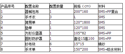 1、 集中性:该产品是将一系列手术中需要的手术单、包布、擦手纸、手术衣和纱布、盘、碗、杯等各种材料和工具集中于一个包装内,减少医疗机构手术材料的准备时间以及搜集各种材料的时间。