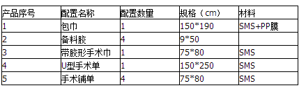 1、 集中性:该产品是将一系列手术中需要的手术单、包布、擦手纸、手术衣和纱布、盘、碗、杯等各种材料和工具集中于一个包装内,减少医疗机构手术材料的准备时间以及搜集各种材料的时间。