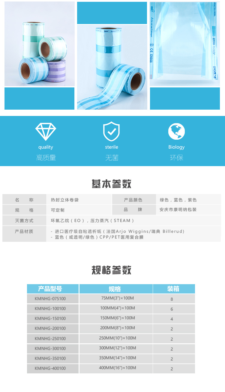 1. 根据医疗器械的大小,选择相适应的包装,将清洁、干燥的器械放入热封立体卷袋内,不应超过长度的3/4,这样才能保证足够的封合,否则,爆裂的可能性会增加。