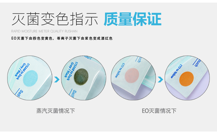 5. 确认包装上的指示标识的变色情况;蒸气灭菌后呈灰黑色;环氧乙烷灭菌后呈黄色。