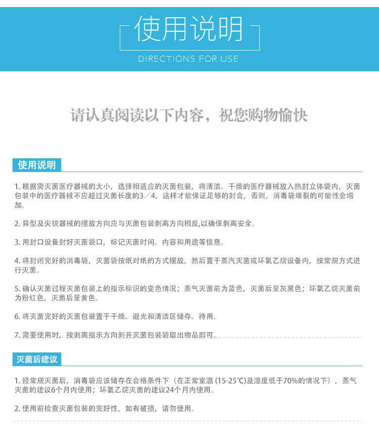2. 异型及尖锐器械的摆放方向应与卷袋剥离方向相反,以确保剥离安全。