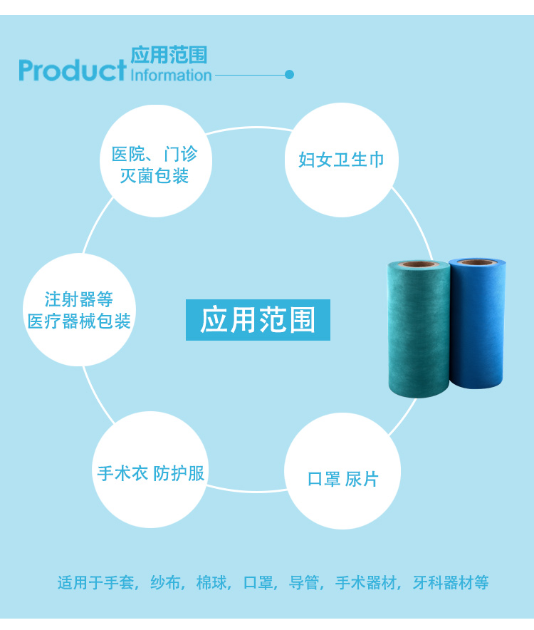 适用于医用品,还可以用于手术衣、防护服、口罩、尿片、 妇女卫生巾等。
