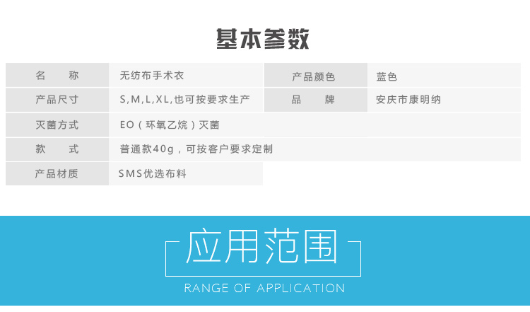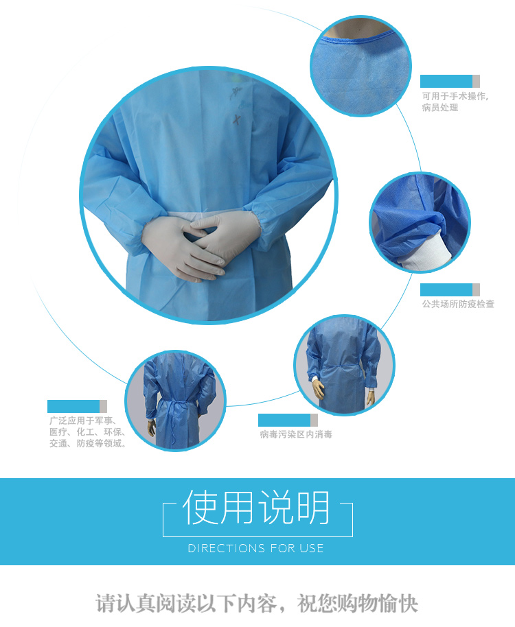 应用范围:广泛用于手术操作,病员处理,公共场所防疫检查,病毒污染区内消毒中穿戴;用于隔绝病菌以及其他因素诱发的感染,避免对病人造成二次感染,防止酒精血液等液体感染医护人员